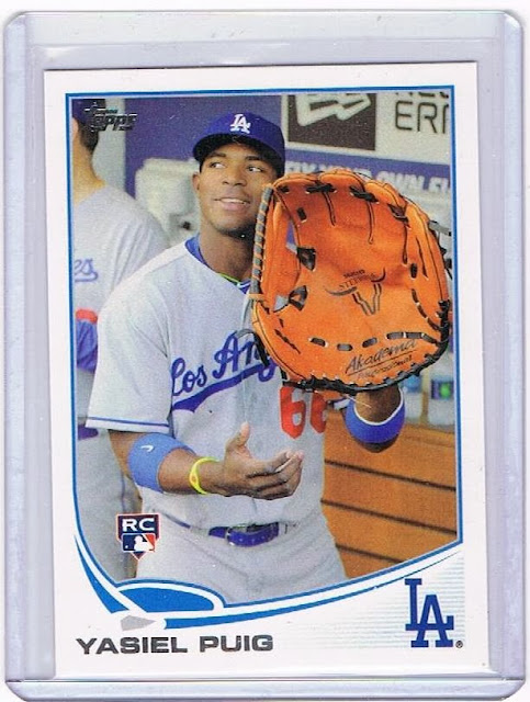 I bought a rack pack of Topps Update the other day, and guess what I pulled? That's right, another Puig photo variation! This is the short-print one instead of the super-short-print one I got in my hobby box. I put this one up on eBay as well, as it seems to be going for $20-25 and that will help me to fund some of my other card projects. I do like the picture on this card. It's good to see cards occasionally that break away from the usual 'guy batting, guy pitching, guy fielding' template. I am still 13 cards short of finishing my Update set, but it shouldn't take too long to finish that up.