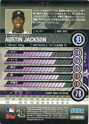 And that does it for the Tigers in 2013 SEGA Card-Gen. At the rate I am going, it may take me several years to get through the whole series of posts. I am only through 16.67% of the teams so far. These are time-consuming to scan and write, so it has been more difficult than I thought it would be to get the whole set up.