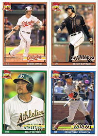 I like the 1991 Topps design. I guess it's my second-favorite design used in this set, although I'd really have to rank them card by card. I wish that Billy Butler could get himself back together, but it looks like maybe 2009-2013 was his peak and he might not have another good run in him. He still looks good on cardboard, though. That Hunter Pence card is pretty sharp. He's out for a couple of months with a hamstring injury.