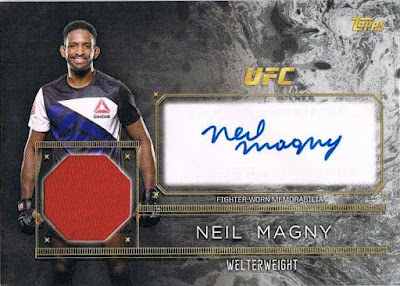 Neil Magny is my main PC fighter, and so the big card from this lot for me was this Top of the Class Autograph Relic card. A lot of the cards in this set aren't numbered, and that is the case with this one. Topps has moved to doing pretty much stickers only for their UFC autographs now, but on this card design they don't look super-terrible. The frame on the card helps to keep the sticker from standing out too much.