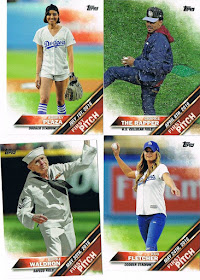 One of my favorite inserts out of Topps in the recent past is the ongoing First Pitch set, which features various personalities throwing out the ceremonial first pitch before Major League baseball games. It's a cool idea, and there is plenty of variety when it comes to potential subjects for the set. There are a lot of games in an MLB season, and pretty much every one has someone throwing that first pitch. You get celebrities, stars from other sports, heroes and survivors, musicians, and pretty much everything else you can think of. I picked up a set of the First Pitch cards from 2016 Topps Update recently from an eBay seller for a couple of dollars.