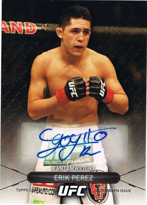 I saw this autograph and I was like, "Who?" Erik Perez is a Bantamweight fighter. I've seen him fight a few times, but I didn't remember it. What is interesting about this card is that he signed it with his nickname, 'Goyito.'
