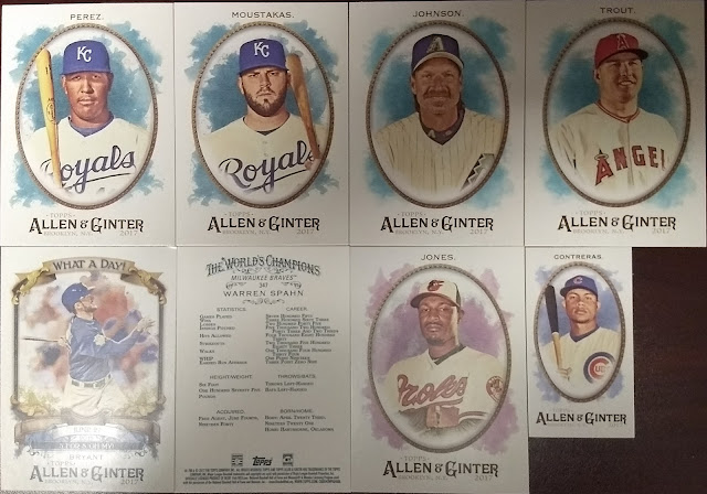 The box containing my Gint-a-Cuffs box of Allen & Ginter arrived the other day, along with several other things I'd ordered. Most of the breaks were pretty good, but the Allen & Ginter box was pretty disappointing. I am having a hard time getting myself motivated to scan the cards and add up the points for the contest, but I will try to get it done by the deadline.