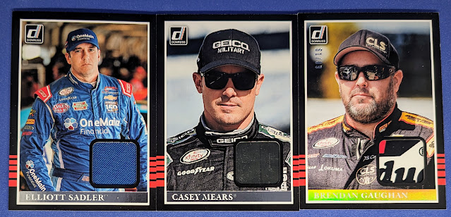 I recently made a decent-sized purchase from Blowout Cards. Part of the buy was a couple cases of Panini racing card blaster boxes. The first case was 2018 Donruss Racing. Not a super exciting product, but at $5 per blaster I thought it would be pretty fun. I'll show the hits from half the case at a time, just to keep from having the post be too long for me to deal with.